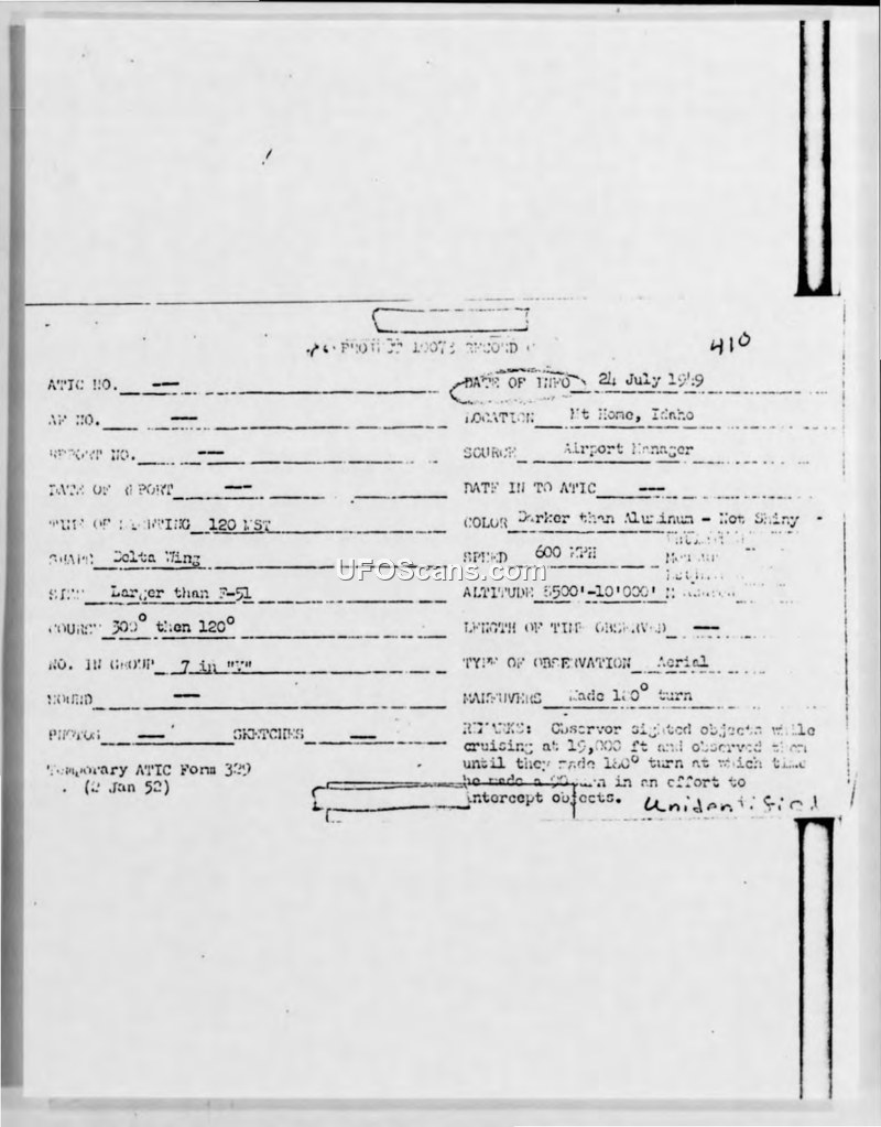 Incident #410: Unidentified Aerial Objects Sighted near Mt Home, Idaho