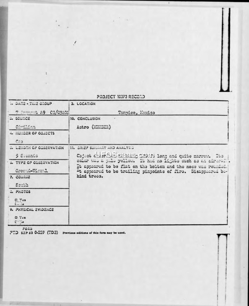 Project 10073 Record — Tampico, Mexico, 7 August 1949