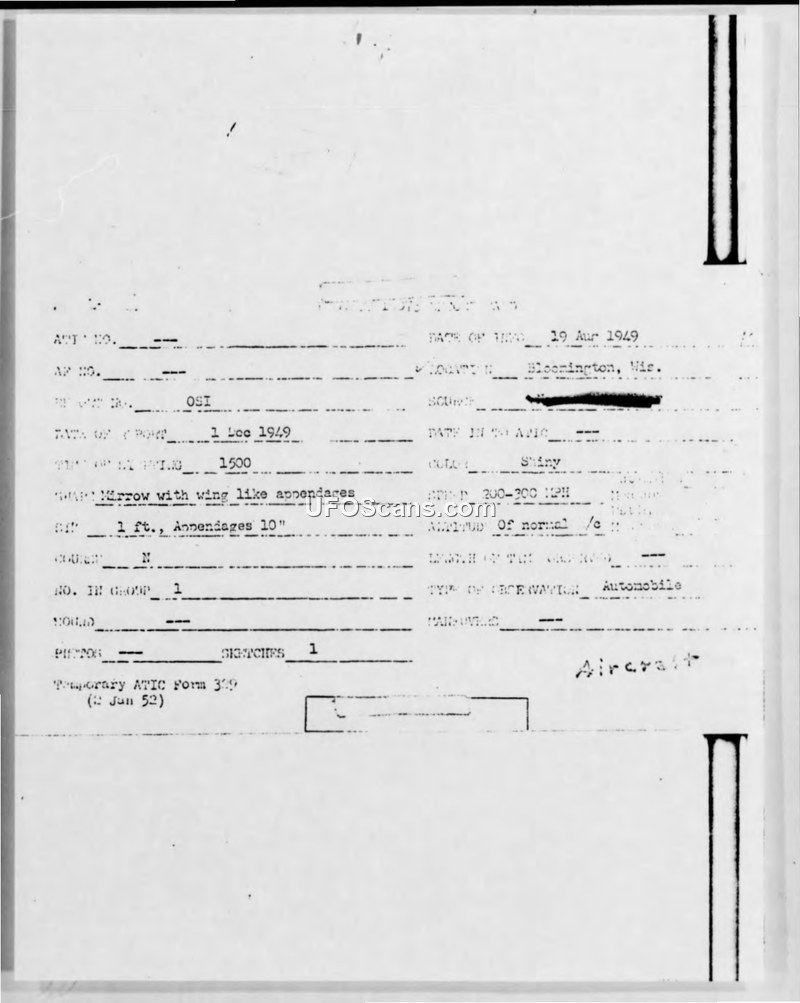 Project Grudge Sighting Report — Glenn Haven Township, Wisconsin, 19 August 1949