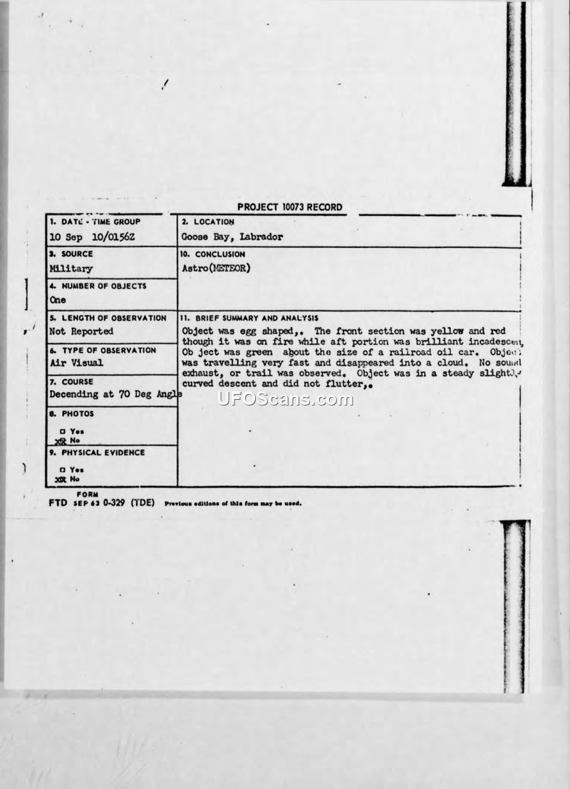 Project Grudge and Project 10073 Records: Compilation of Unidentified Aerial Phenomena Reports (1949)