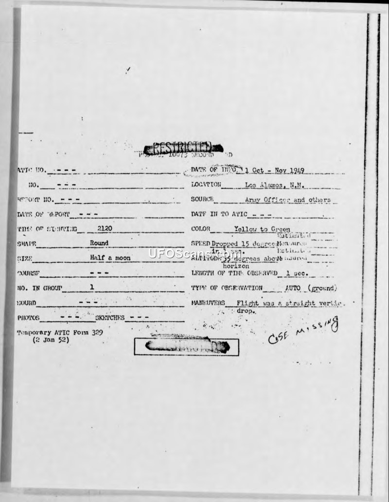 Compilation of Unidentified Aerial Phenomena Reports — Los Alamos, New Mexico, October-November 1949