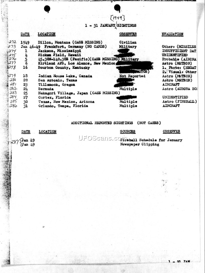 1949 Sightings Log: January through December