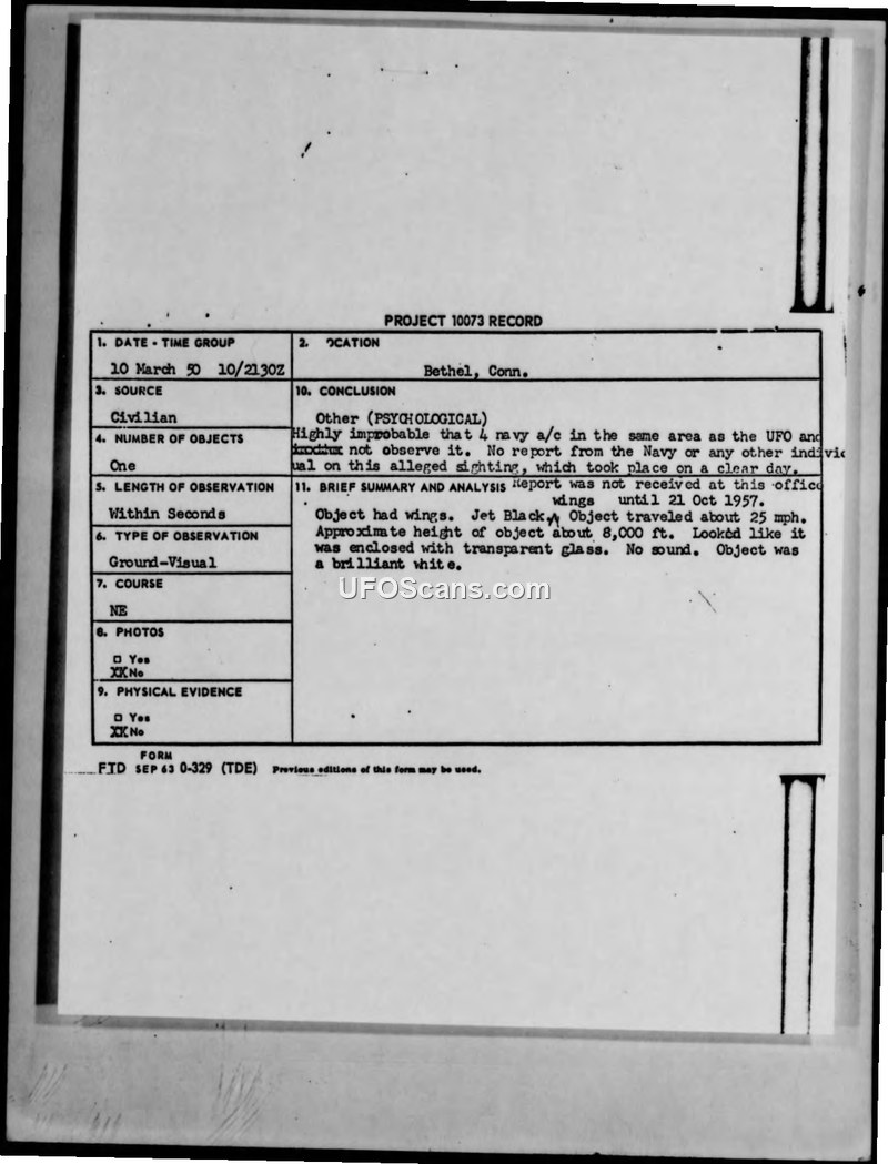 Project 10073 Record — Bethel, Conn. 10 March 1950