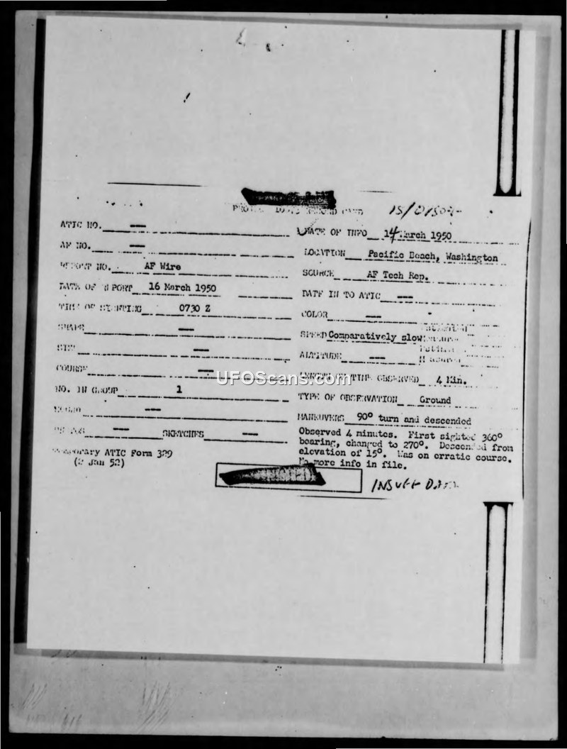 Sighting Report — Pacific Beach, Washington, 15 March 1950