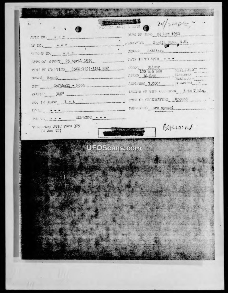 Unidentified Aerial Phenomena Report — Sandia Base, 24 March 1950