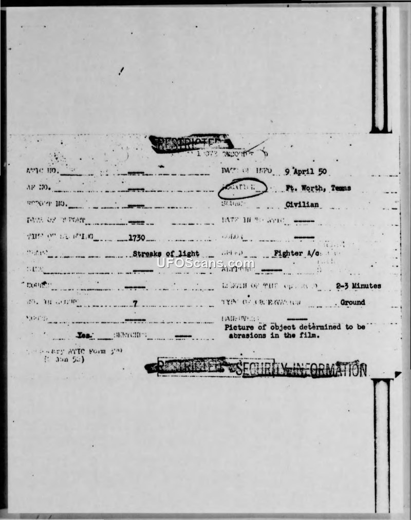 Investigation of Alleged 'Flying Saucers' — Ft. Worth, Texas, April 1950