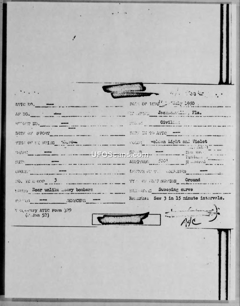 Reports of unconventional aircraft over Jacksonville, Florida, were compiled by the Third Army and forwarded to the Air Materiel Command.
