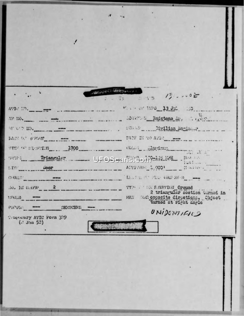 Report of Unusual Incident — Redstone Arsenal, 13 July 1950