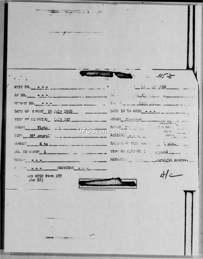 Spot Intelligence Report — Unidentified Aerial Phenomena, 29 July 1950