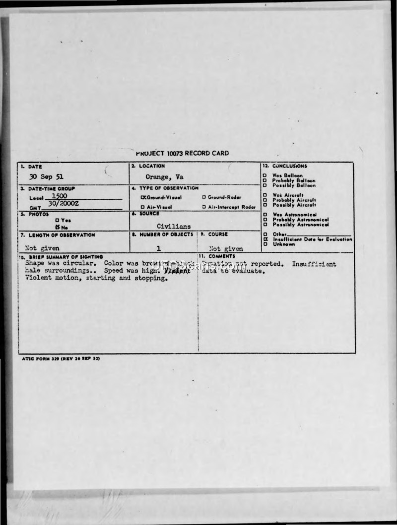 The Air Force concluded the sightings were likely migratory birds reflecting city lights. The high angular velocity reported was deemed an overestimation by observers.