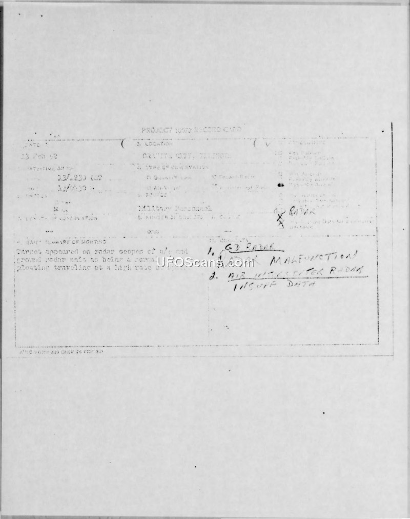 Report of Incident — Granite City, Illinois, 13 February 1952