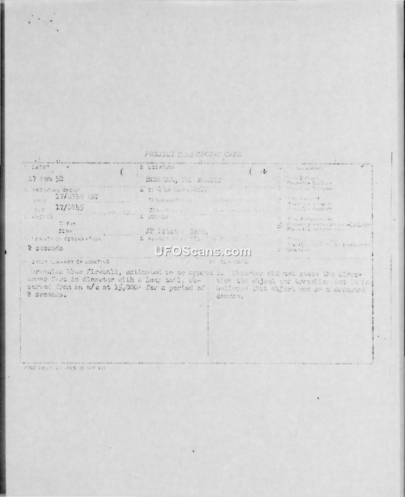 Project Blue Book Record Cards and Intelligence Reports — February 1952