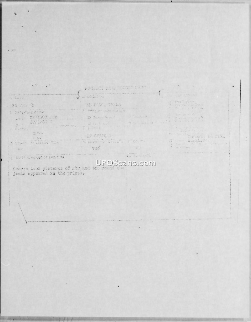 Report of Unidentified Flying Objects - 22 February 1952, El Paso, Texas