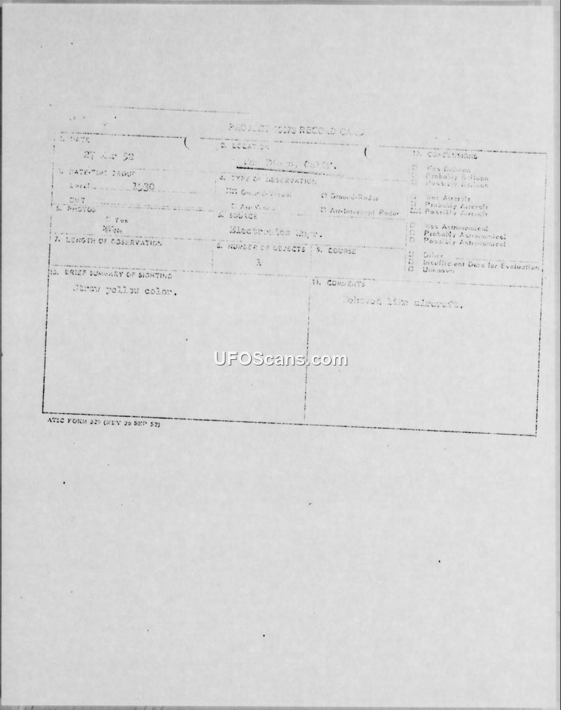 Air Intelligence Information Report: Unconventional Airborne Object Sighting, 29 March 1952