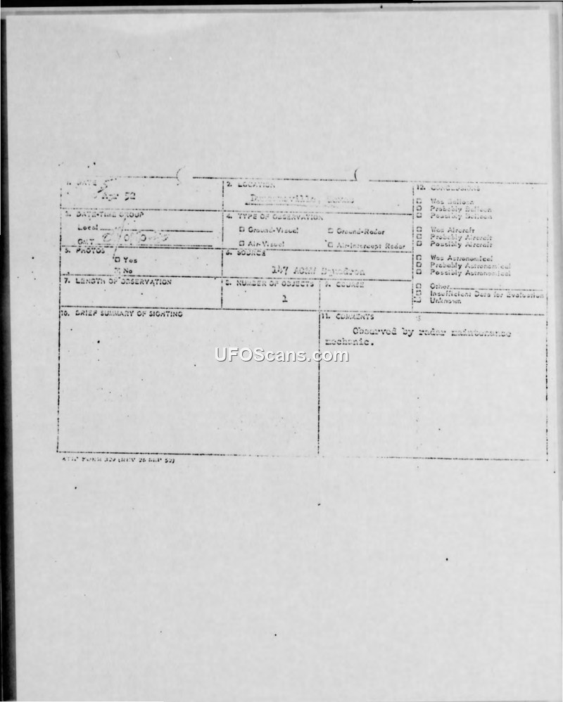 Unusual Radar Target and Observer Questionnaire — Flint, Michigan, April 1952