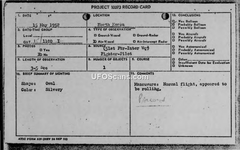 Air Intelligence Information Reports: Sightings of Unidentified Flying Objects in Korea (May 1952)