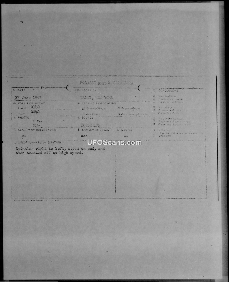 Project Iowa Record Card — Bronx, New York, 27 June 1952