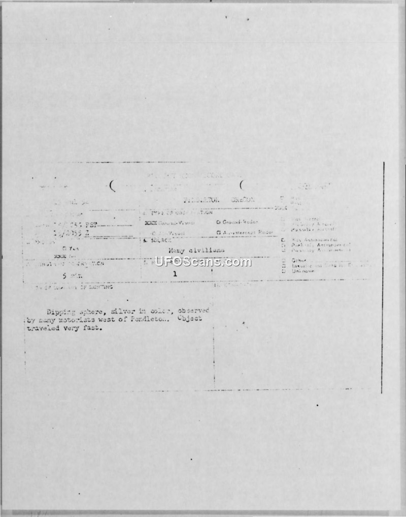 Unidentified Flying Object Report — Pendleton, Oregon, 16 July 1952