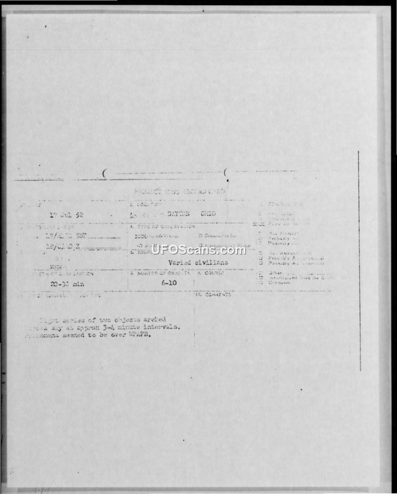 Project 1073 Record Card — Dayton, Ohio, 17 July 1952