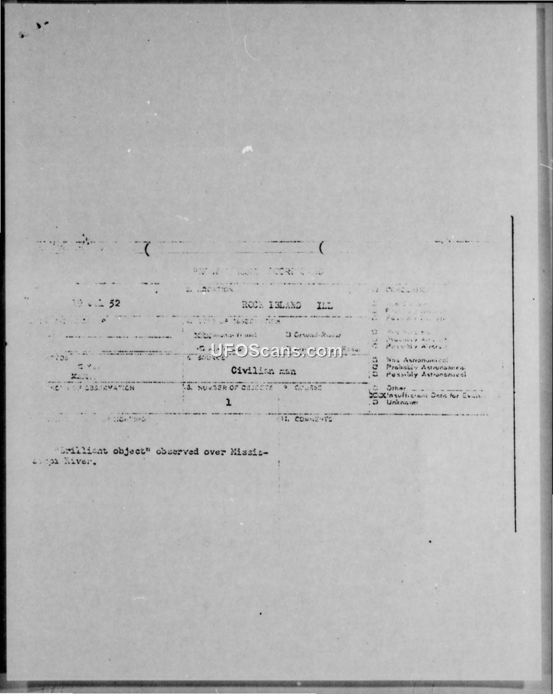 UAP Sighting Report — Rock Island, Illinois, 19 July 1952