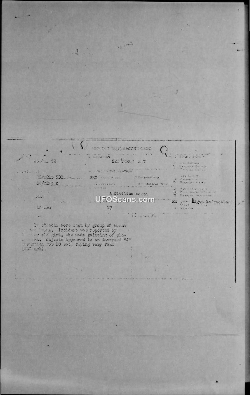 Sighting Report: 17 Objects over the Bronx, New York, July 25, 1952