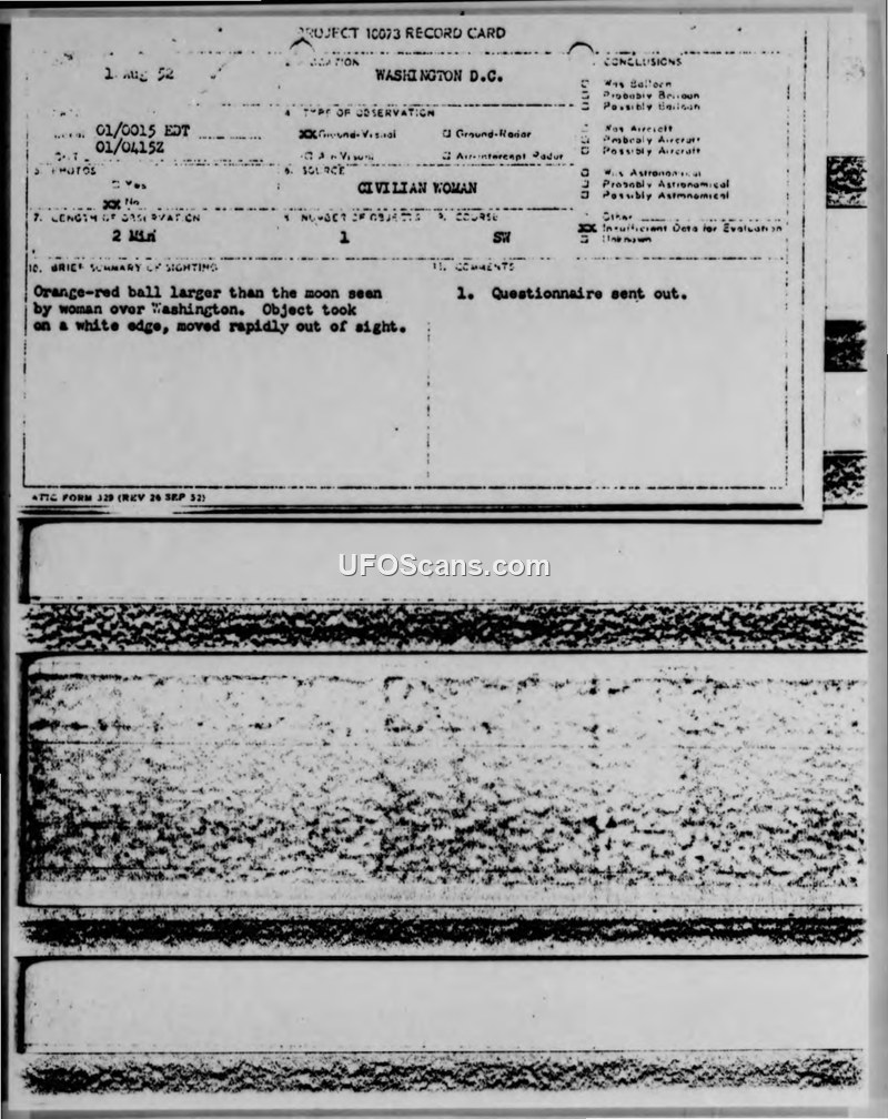 Project 10073 Record Cards and Related Correspondence — Washington D.C., August 1952