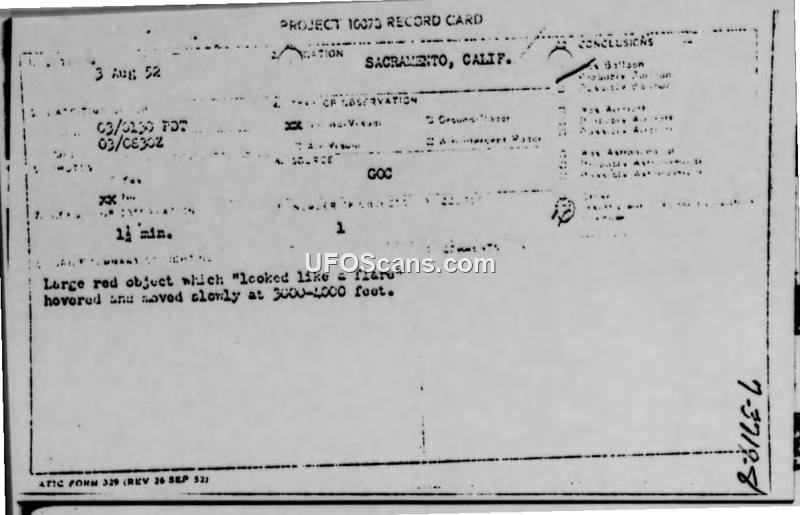 Project 10073 Record Cards and Air Intelligence Information Reports — Sacramento, California, August 1952