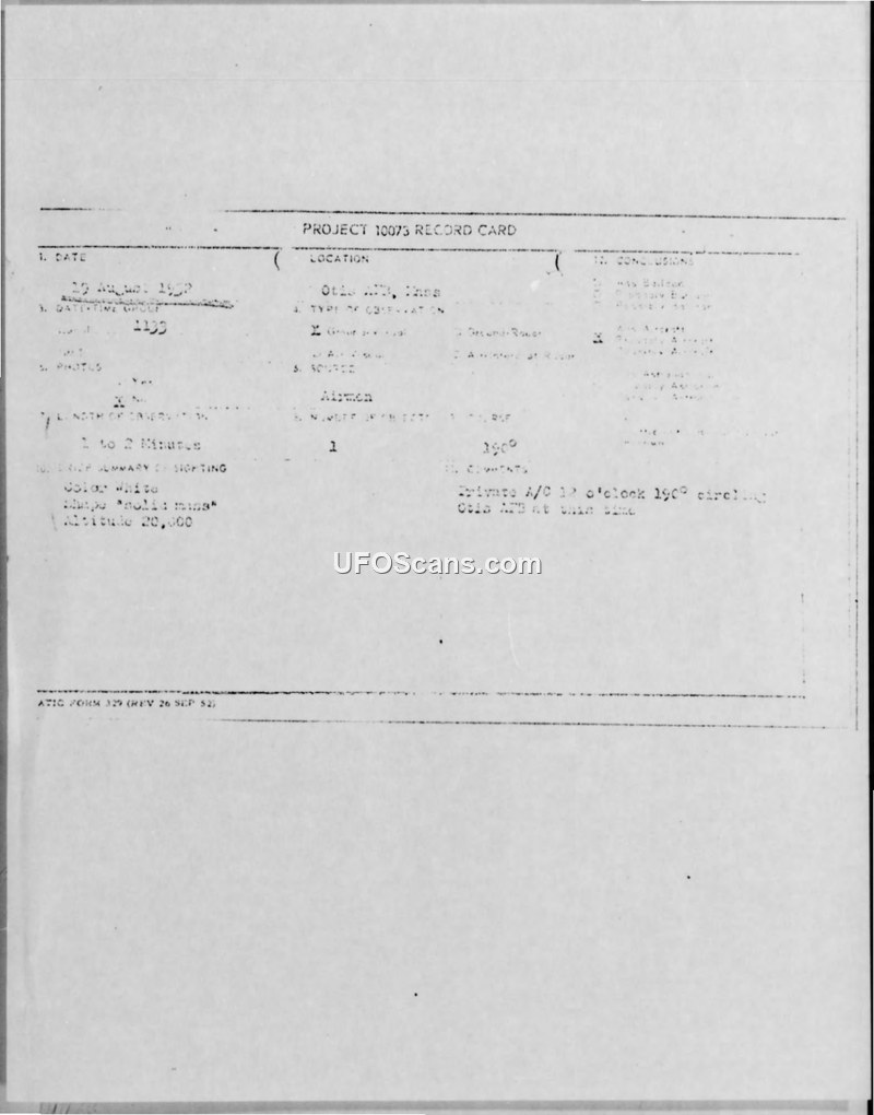 Project 10073 Record Card — Otis AFB, Mass, 19 August 1952