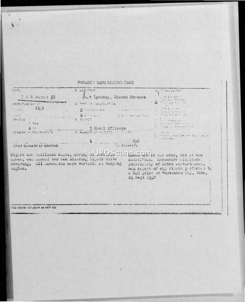 Project 10073 Record Card and Related Correspondence — Port Lyautey, French Morocco, August 1952