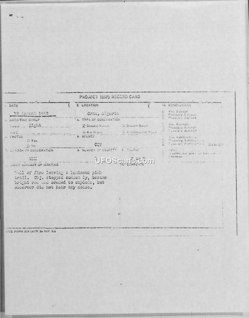 Project 10073 Record Card — Ain Sefra, Algeria, 12 August 1952