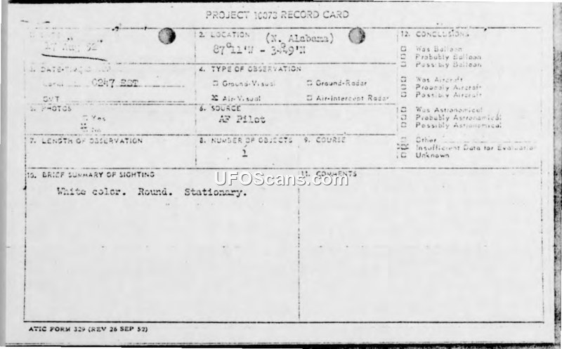 Project 10073 Record Card and Air Intelligence Information Report — 17 August 1952