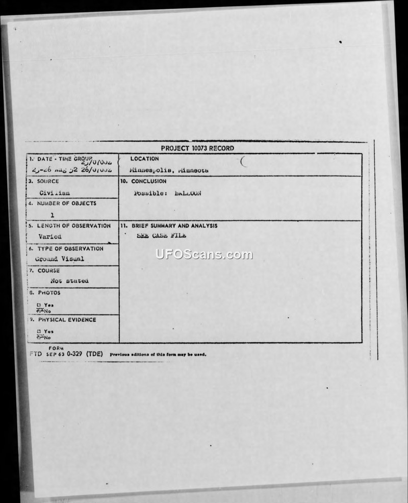 Project 10073 Record — Minneapolis, Minnesota, August 1952