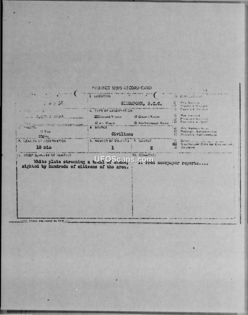 Project 10073 Record Card and Air Intelligence Information Report — Singapore, B.C.C. and Albuquerque, N.M.