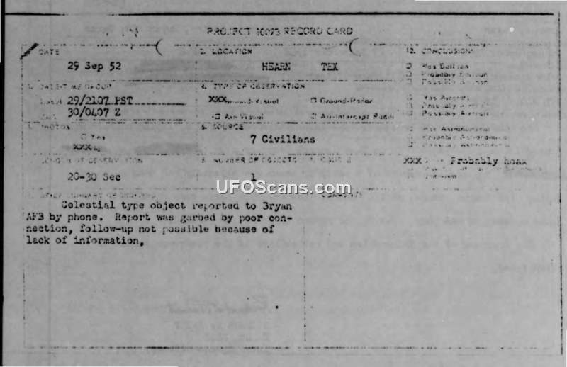 Project 10073 Record Card — Hearn, Texas, 29 Sep 52