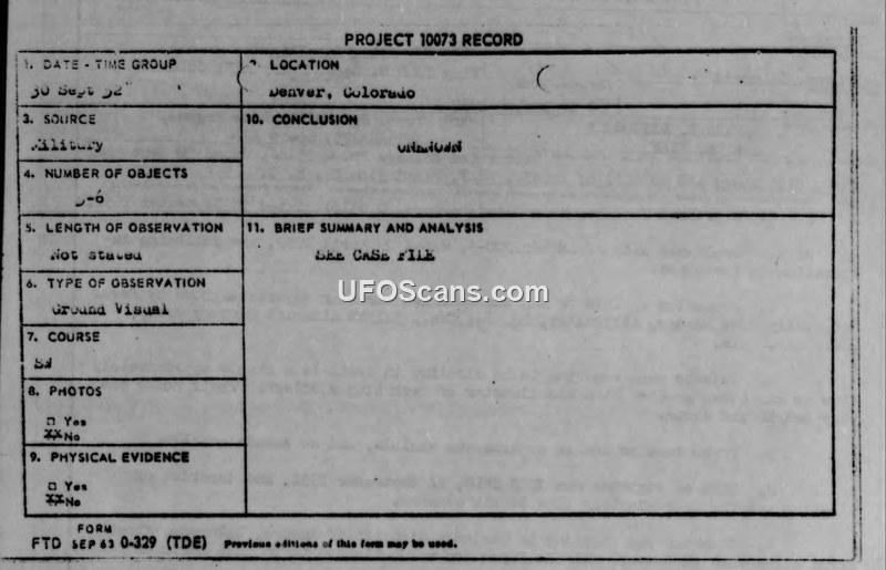 Project 10073 Record — Sighting Report, Denver, Colorado, 24 September 1952
