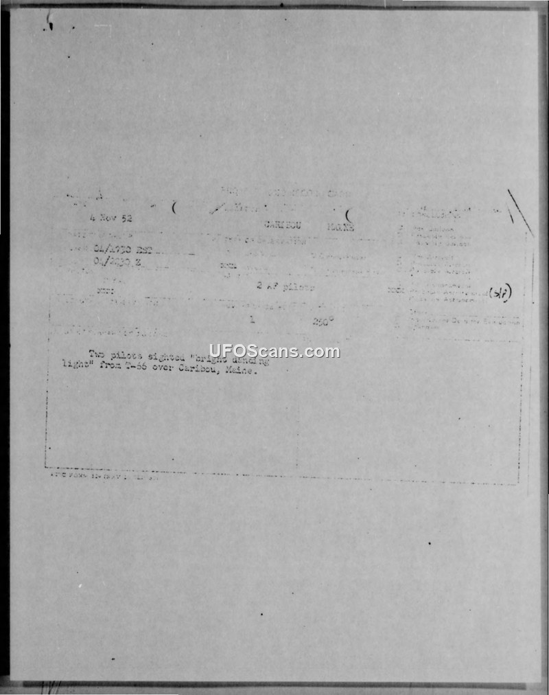 Air Intelligence Information Report: Report of Unidentified Flying Object - 4 Nov 52