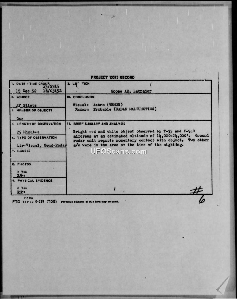 Project 10073 Record and Air Intelligence Information Reports — Goose AB, Labrador, November-December 1952