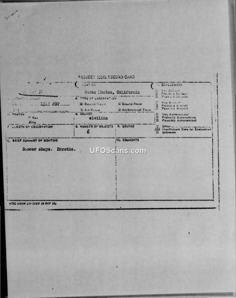 Project 10073 Record Card and Air Intelligence Information Report — Santa Monica, California, 30 August 1952