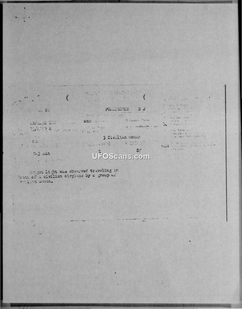 This report documents a 1952 sighting of an unidentified light by three witnesses in New Jersey. The military investigation concluded the witnesses were reliable, but the object remained unidentified.