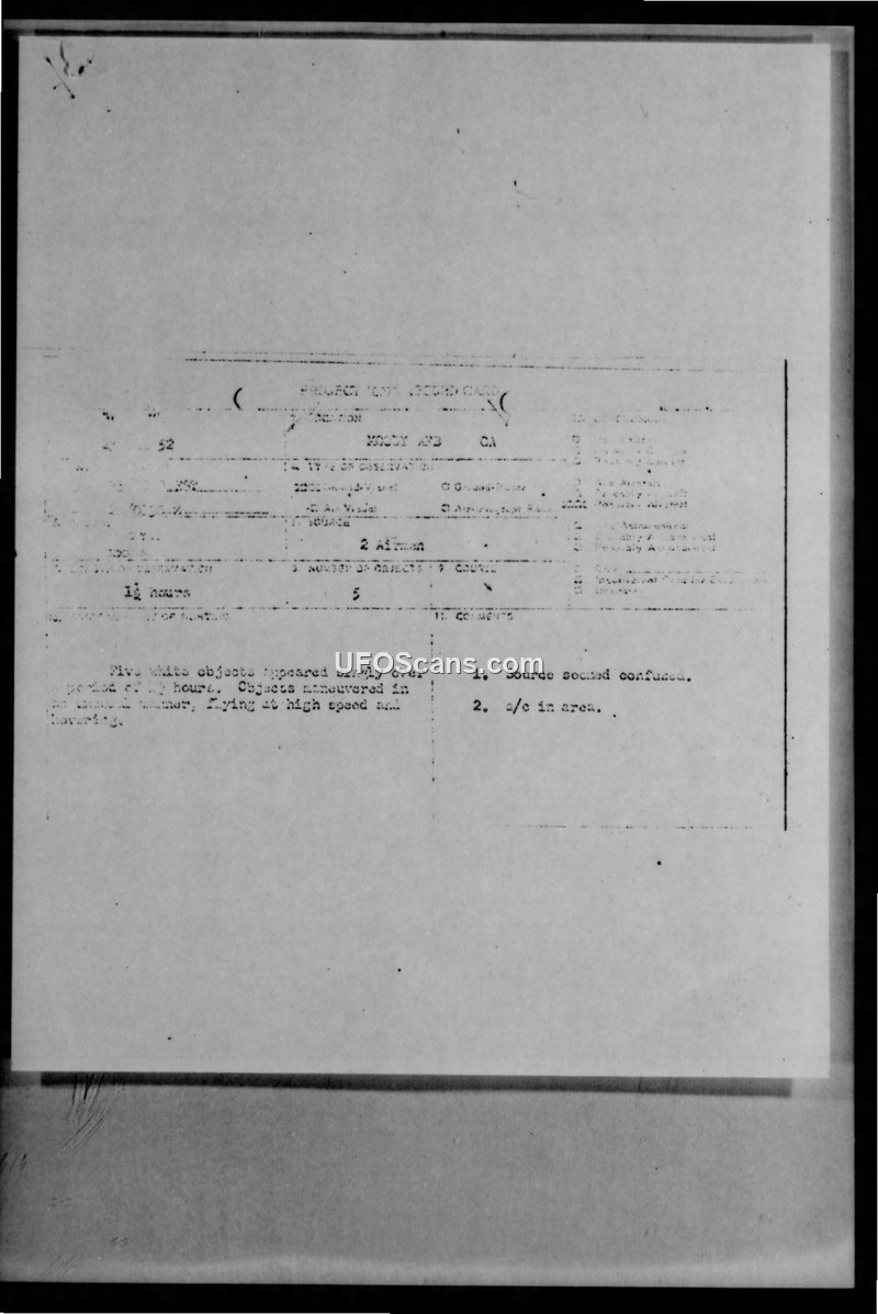 Witnesses reported multiple unusual flying objects with varying characteristics, including high-speed maneuvers and color changes. Investigators noted difficulty in witness testimony regarding maneuvers and altitude.