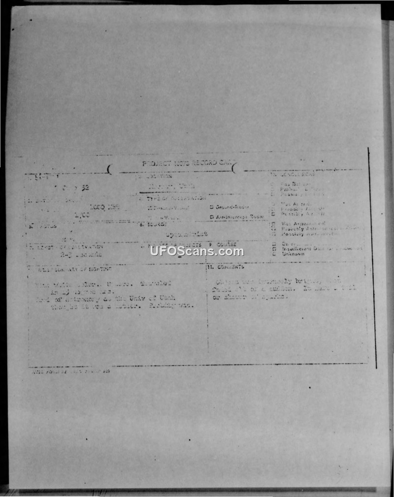 Project Blue Book Sighting Reports and Correspondence — 1952