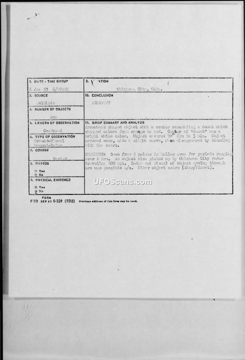 Air Intelligence Information Report: Unidentified Flying Object Sighting, Dallas, Texas, 6 January 1953