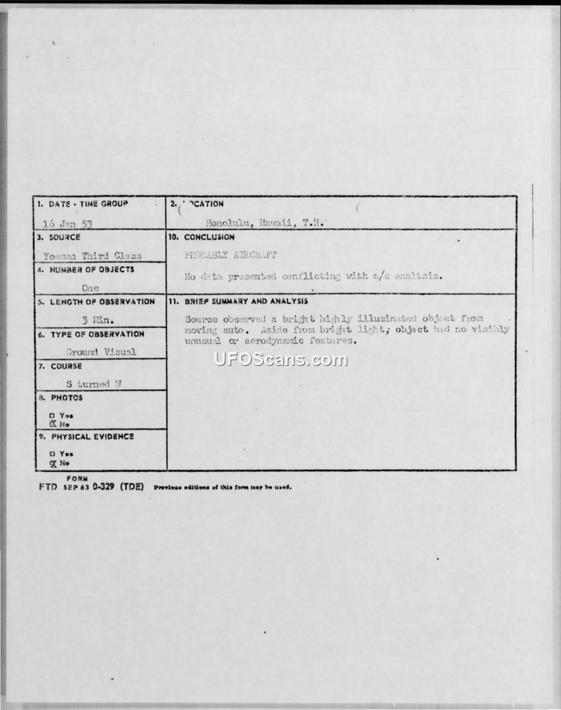 FLYOBRPT IR-101-53 — Honolulu, Hawaii, 16 January 1953