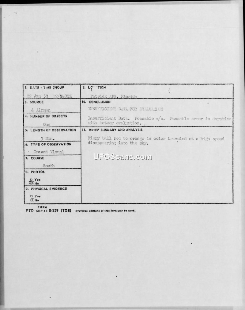 Compilation of UAP Sighting Reports — Patrick AFB, Florida, January 1953