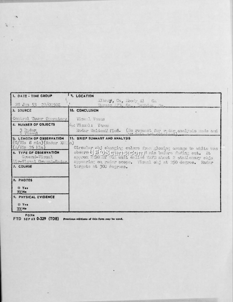 Incident Report: Unidentified Aerial Object Sighting - Albany, Georgia, 28 January 1953