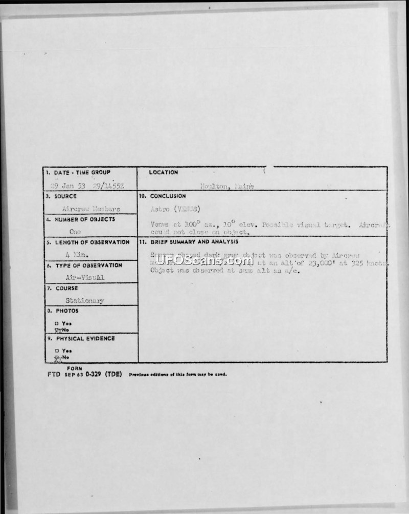 Incident Report — 29 January 1953, Caswell, Maine