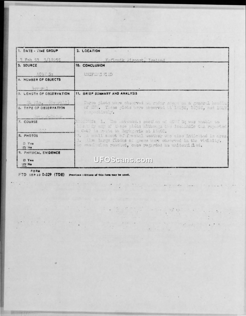 Unidentified Flying Objects (Restricted) — Keflavik Airport, Iceland, 3 February 1953