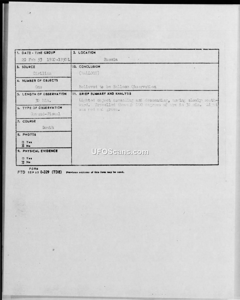 It is believed that many of these sightings are the result of Soviet balloon activity.