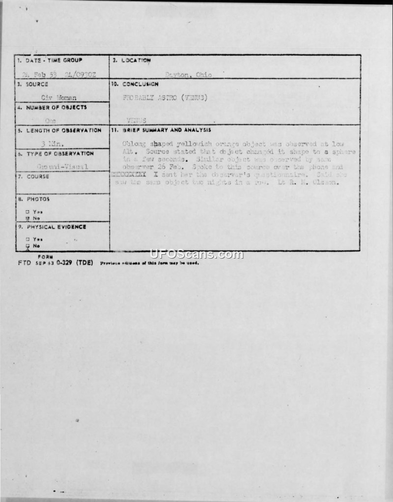 Air Intelligence Information Reports and Questionnaires — Dayton, Ohio and Sherman, Texas, February 1953