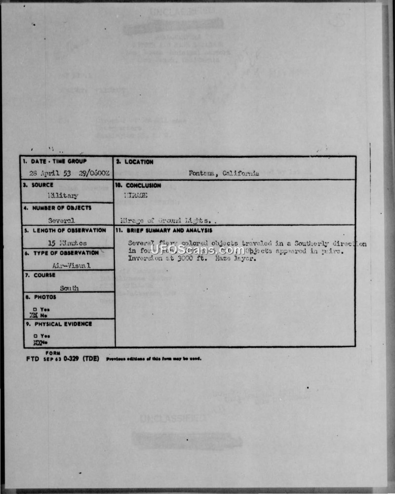 Unidentified Flying Object Report — Fontana, California, 28 April 1953